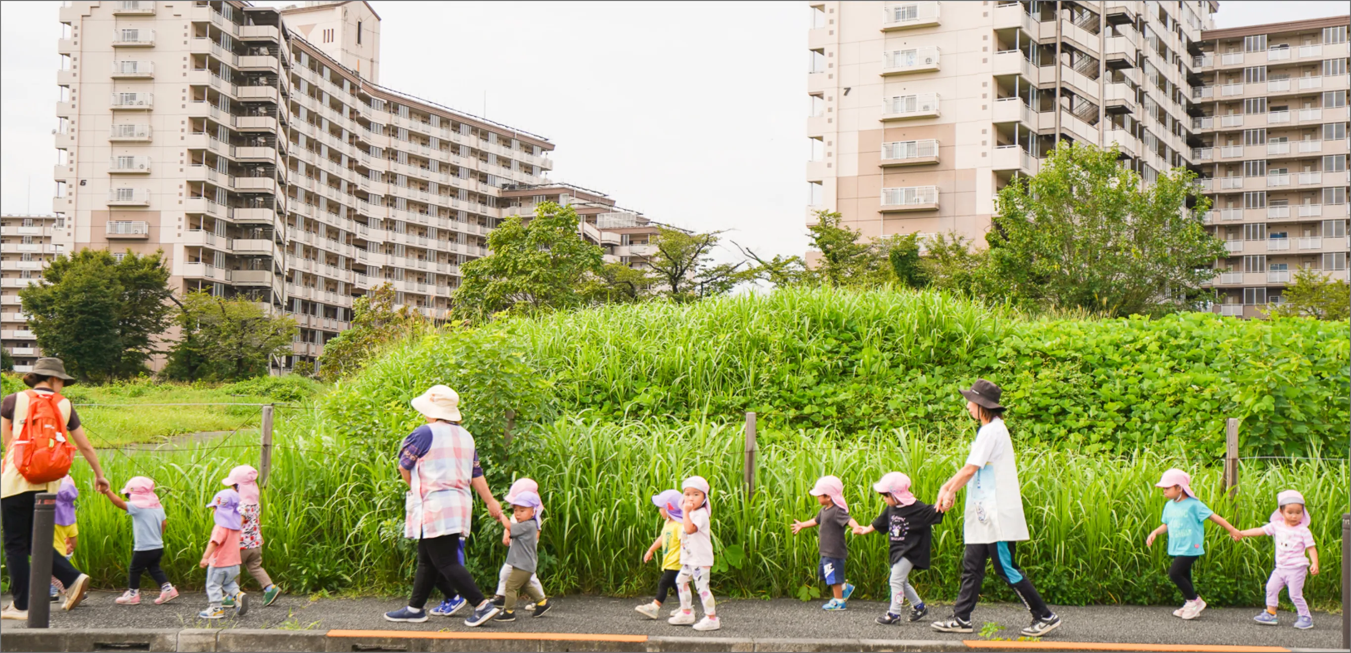 私たちは、子どもが安心して過ごせる”大きなおうち”のような温かい園を目指しています。そして、水や緑に恵まれた環境の中で、散歩や自然観察を通して子ども達の豊かな感性を育んでいます。子ども達が、元気な心と身体を保ち表現できるように見守り支えていきます。これからも保護者の皆様と共に、お子さまの笑顔と成長を大切に見守ってまいります。