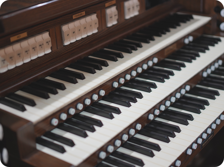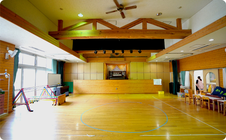 子どもたちに、「本物を見せたい!聞かせたい!触れさせたい!」創立者の強い思いから、2階ホールにはパイプオルガンがあります。集会や朝の会といった日常や、誕生会、クリスマス祝賀会、卒園式といった特別な日に演奏され、本物の音色を子どもたちへ聴かせています。ピアニストやフルート奏者、バイオリニストをお招きしての定期コンサートも開催しています。